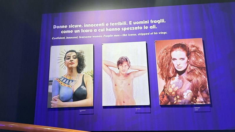 Questa emancipazione era presente in tutta una serie di foto di donne e uomini in pose diverse, alcuni nudi altri con dei vestiti. La frase introduttiva era “ donne sicure, innocenti e terribili. E uomini fragili come un Icaro a cui hanno spezzato le ali”.